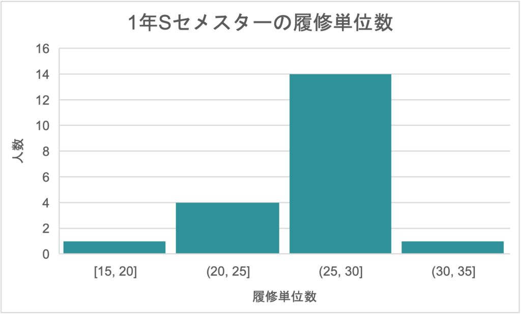 履修単位数は25-30単位の人が大多数でした。